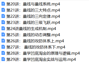 量学云讲堂李亚民金城伏击龙头第49期量学擒龙量学基训系统课/ ├──收评 | ├──00205李下.mp4 83.85M | ├──01-24-收评.mp4 175.56M | ├──0103李.mp4 930.20M | ├──0105收评.mp4 451.40M | ├──0108收评.mp4 432.37M | ├──0109收评.mp4 282.09M | ├──0111收评.mp4 377.09M | ├──0115收评.mp4 169.55M | ├──0123李收评.mp4 400.96M | ├──0125李.mp4 240.62M | ├──0129李亚民.mp4 226.44M | ├──0130李.mp4 145.05M | ├──0201李.mp4 202.25M | ├──0202李下.mp4 84.36M | ├──0206李上.mp4 221.65M | ├──1229李收评.mp4 562.91M | ├──240110.mp4 334.41M | ├──240121.mp4 312.75M | └──240122.mp4 169.27M └──主课3段位课 | ├──第20讲:量线与量线系统.mp4 107.13M | ├──第21讲:量线的三大特点.mp4 84.73M | ├──第22讲:量线的三向定律.mp4 84.49M | ├──第23讲:量线的三级飞跃.mp4 93.22M | ├──第24讲量线的生成机制.mp4 97.82M | ├──第25讲:量线的动态调整.mp4 97.47M | ├──第26讲:量线的攻防体系上.mp4 131.14M | ├──第27讲: 量线的攻防体系下.mp4 289.60M | ├──第28讲:量学凹底淘金的原理与逻辑.mp4 104.75M | └──第29讲:量学凹底淘金实战与运用.mp4 131.01M