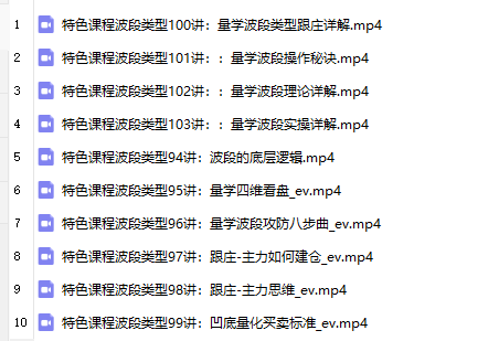 54 量学云讲堂李亚民金城伏击龙头第54期量学擒龙量学基训系统课/ ├──11段位课 | ├──特色课程波段类型100讲:量学波段类型跟庄详解.mp4 163.06M | ├──特色课程波段类型101讲::量学波段操作秘诀.mp4 183.11M | ├──特色课程波段类型102讲::量学波段理论详解.mp4 155.96M | ├──特色课程波段类型103讲::量学波段实操详解.mp4 245.94M | ├──特色课程波段类型94讲:波段的底层逻辑.mp4 122.39M | ├──特色课程波段类型95讲:量学四维看盘_ev.mp4 179.98M | ├──特色课程波段类型96讲:量学波段攻防八步曲_ev.mp4 163.86M | ├──特色课程波段类型97讲:跟庄-主力如何建仓_ev.mp4 131.71M | ├──特色课程波段类型98讲:跟庄-主力思维_ev.mp4 192.53M | └──特色课程波段类型99讲:凹底量化买卖标准_ev.mp4 146.98M └──54期收评 | ├──0729李.mp4 204.46M | ├──0730李.mov 492.67M | ├──0730李_ev.mov 292.35M | ├──0731李.mp4 289.24M | ├──0801李.mp4 523.99M | ├──0802李.mp4 517.40M | ├──0805李.mp4 345.51M | ├──0807李.mp4 288.00M | ├──0807李答疑.mp4 355.88M | ├──0808李.mp4 301.19M | ├──0809李.mp4 377.45M | ├──0812李亚民.mp4 126.95M | ├──0813李.mp4 525.05M | ├──0814李.mp4 493.08M | ├──0815答疑.mp4 231.98M | ├──0816收评.mp4 295.30M | ├──0819李.mp4 243.10M | ├──0821周三答疑.mp4 375.98M | ├──0822李.mp4 357.68M | ├──0826李.mp4 291.36M | ├──0827李亚民.mp4 330.85M | ├──0828答疑.mp4 226.10M | ├──0828李收评.mp4 179.69M | └──8月6日.mp4 277.72M